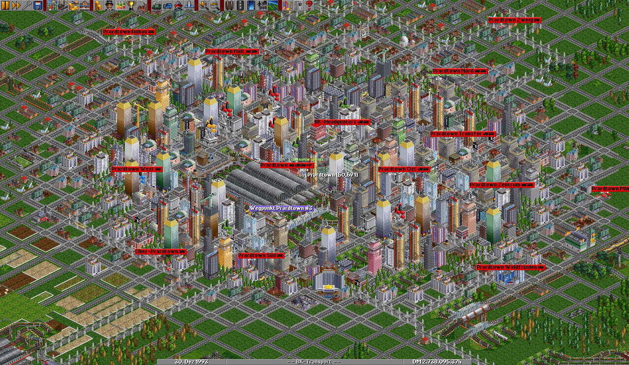 - das Stadtwachstum wird von einigen Parametern gesteuert, die man sich im Sourcecode ansehen kann. Eine Stadt wächst erst dann vernünftig wenn sie 5 Ladestellen im Zentrum hat die regelmäßig (mind alle 20 tage (?)) bedient werden.