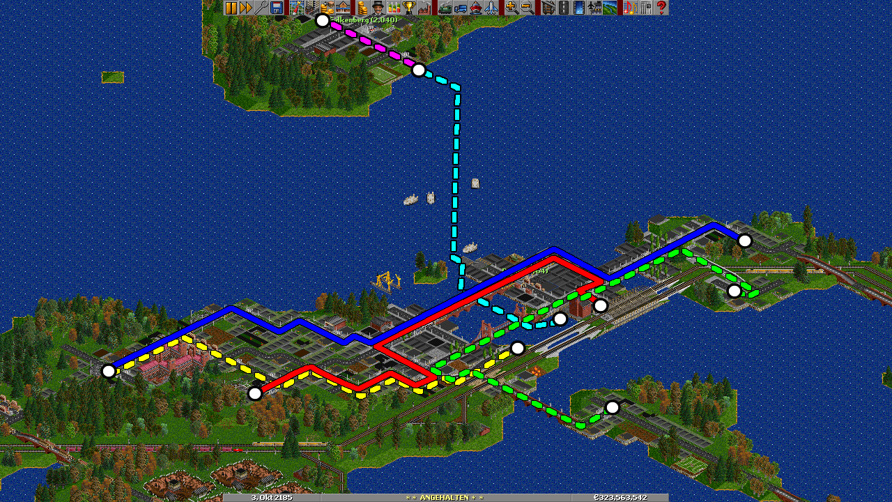 ist 'ne S-Bahnlinie. Die Kreise sind Endhaltestellen, die Quadrate einzelne Haltestellen, da fehlen ne Menge, da hatte ich noch keine Lust drauf alle darzustellen.