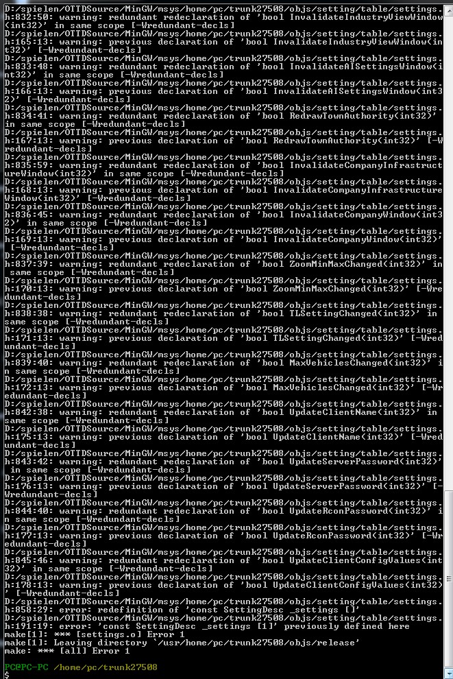 habe heute meinen Trunk von Revision r27506 auf r27508 erneuert, wollte neu Compilieren und erhalte folgende Fehler ohne eingegriffen zu haben (siehe Bild). Der Trunk 27506 hat einwandfrei funktioniert und ich konnte damit spielen.