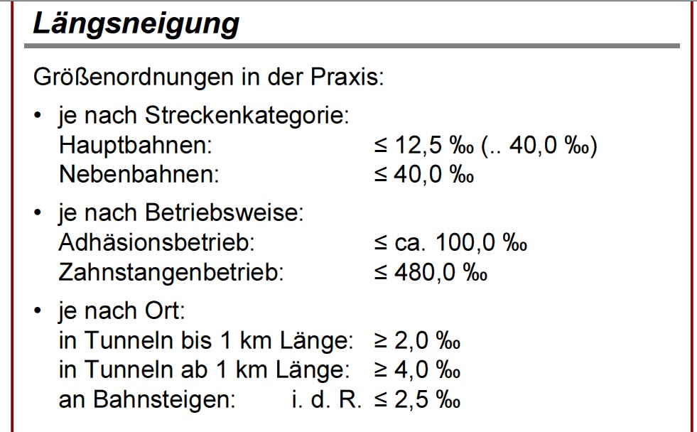 - Hauptbahnen bis 25 ‰
