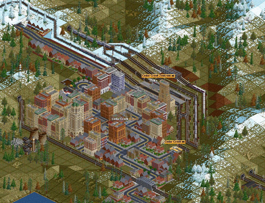 Cedar Creek, ein kleineres verschlafenes Städtchen im Nordwesten der Karte. Für Diejenigen, die eine idyllische Umgebung der Großstadt vorziehen allerdings in idealer Lage. Regelmäßig verkehrt der Nahverkehr in die nächstgrößeren Metropolen. Für manche Anwohner sind die Umfahrungsstrecken der Schnellzüge auf dem Weg ins aufstrebende Rochester allerdings eine Plage. Erst vor Kurzem wurde die Gleisanlage erweitert.