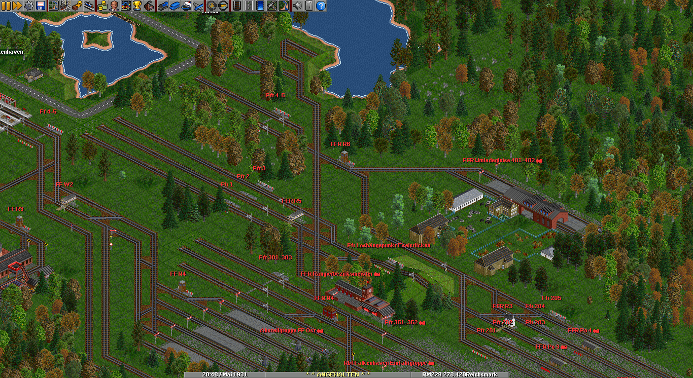 Es folgt ein Überblick über den Knoten Falkenhaven, zu nächst der Personenbahnhof, nach DienstVorschrift 100 mit der Abkürzung FF.