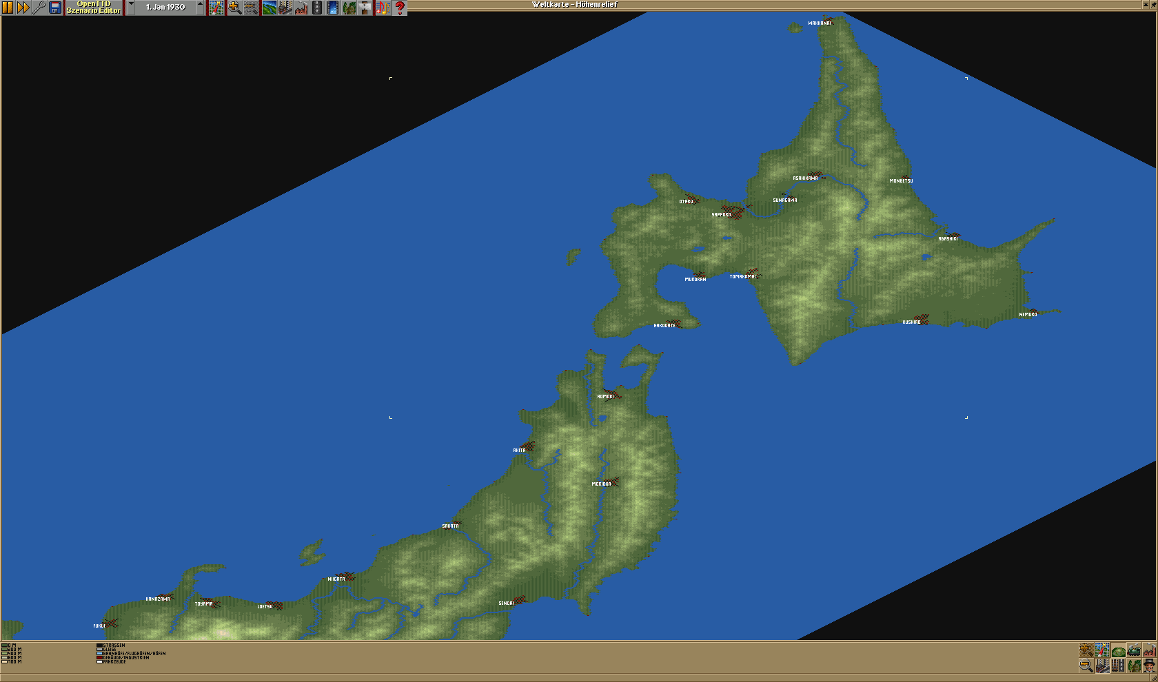 Japan ist vermutlich am schönsten gestaltbar der vielen NewGRFs dafür. Und auch geografisch (genauso wie Süd-Amerika) interessant, da sehr schön bergig, aber auch ausreichend Wasser, um schön verbundene Infrastruktur bauen zu können.