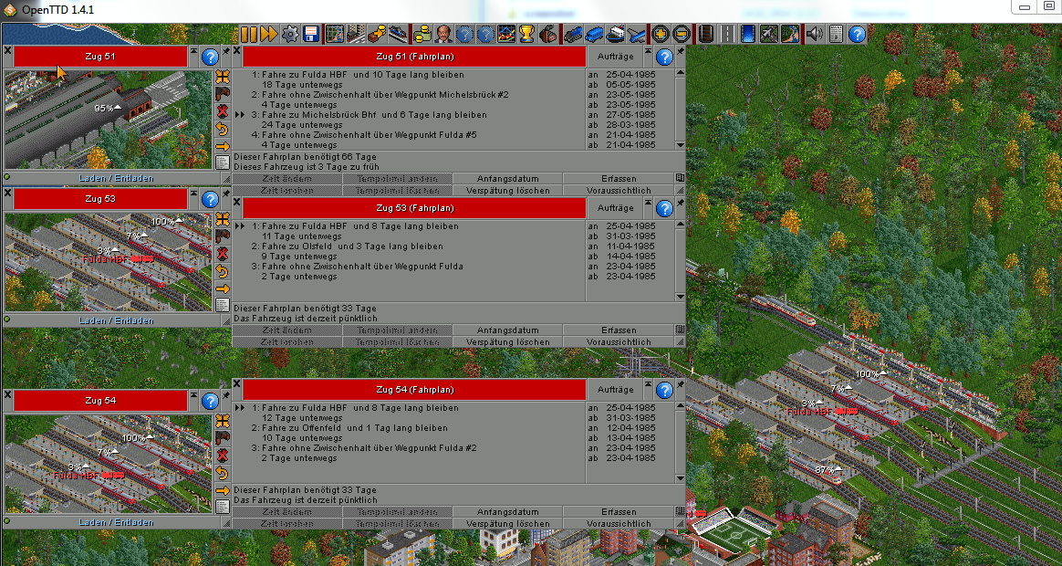 Fahrpläne sind am Bahnhof nach Uhrzeiten sortiert. Wenn Ich im Spiel aber nur Tage/Monate habe um Fahrpläne zu bauen, wirds im Kopf sehr Problematisch! Auserdem brauchen die Züge unterschiedlich Lange auf den unterschiedlichen Strecken, und nun diese in wiederholbare Zeitpakete zu bauen, ist im Tage/Monate Modus quasie gar nicht mehr zu händeln!