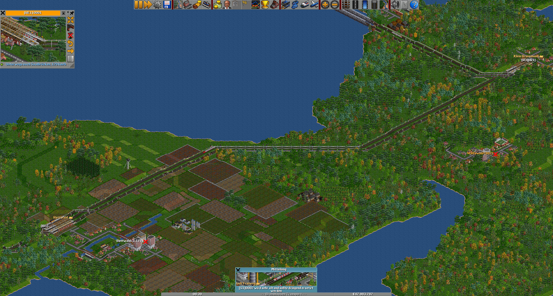 Nach Fürstenmünster wird's zweigleisig, hier zweigt auch die Güterzuglinie zur Fabrik ab und man kommt in Südfurt an. Diese Stadt hat eine nicht so gute Anbindung wie die übrigen Städte. Da uns jedoch ein gutes Image wichtig ist, werden wir hier in Zukunft einen besseren Regionalverkehr anbieten, so wird die R2 durch ein weiteres Zugpaar ergänzt und vielleicht auch der RE1.