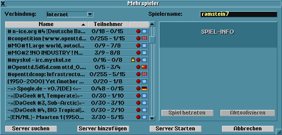 OTTD Wie kann man einem Multiplayerspiel beitreten oder einen Server erstellen?