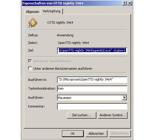 Wo muss ich dieses "./openttd -d pbs=1" denn genau eintragen?