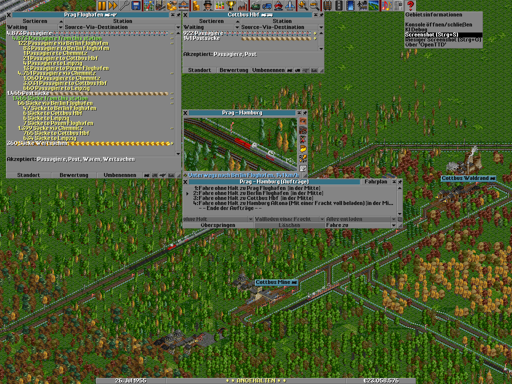 Zitat:wenn ein Fahrzeug an einer Station lädt, lädt es generell nur die "Güter", die zum nächsten realen Halt im Fahrplan wollen. Ein reeler Halt ist jeder Bhf [auf der befahrenen Strecke, Anm. von mir] an dem das Fahrzeug laden oder entladen kann