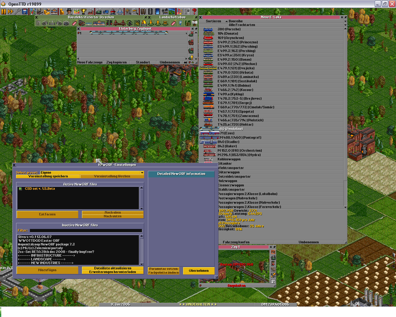 Also werde ich jetzt weiterhin mit den Deutschen Zügen und dem Rest der bei mir drin ist in der Liste fleißig weiter basteln und hoffen das es wie bis jetzt eigentlich weiterhin reibungslos funktioniert bis auf die NewGRFs die ich hinzugefügt hatte nach dem das Spiel gestartet war.