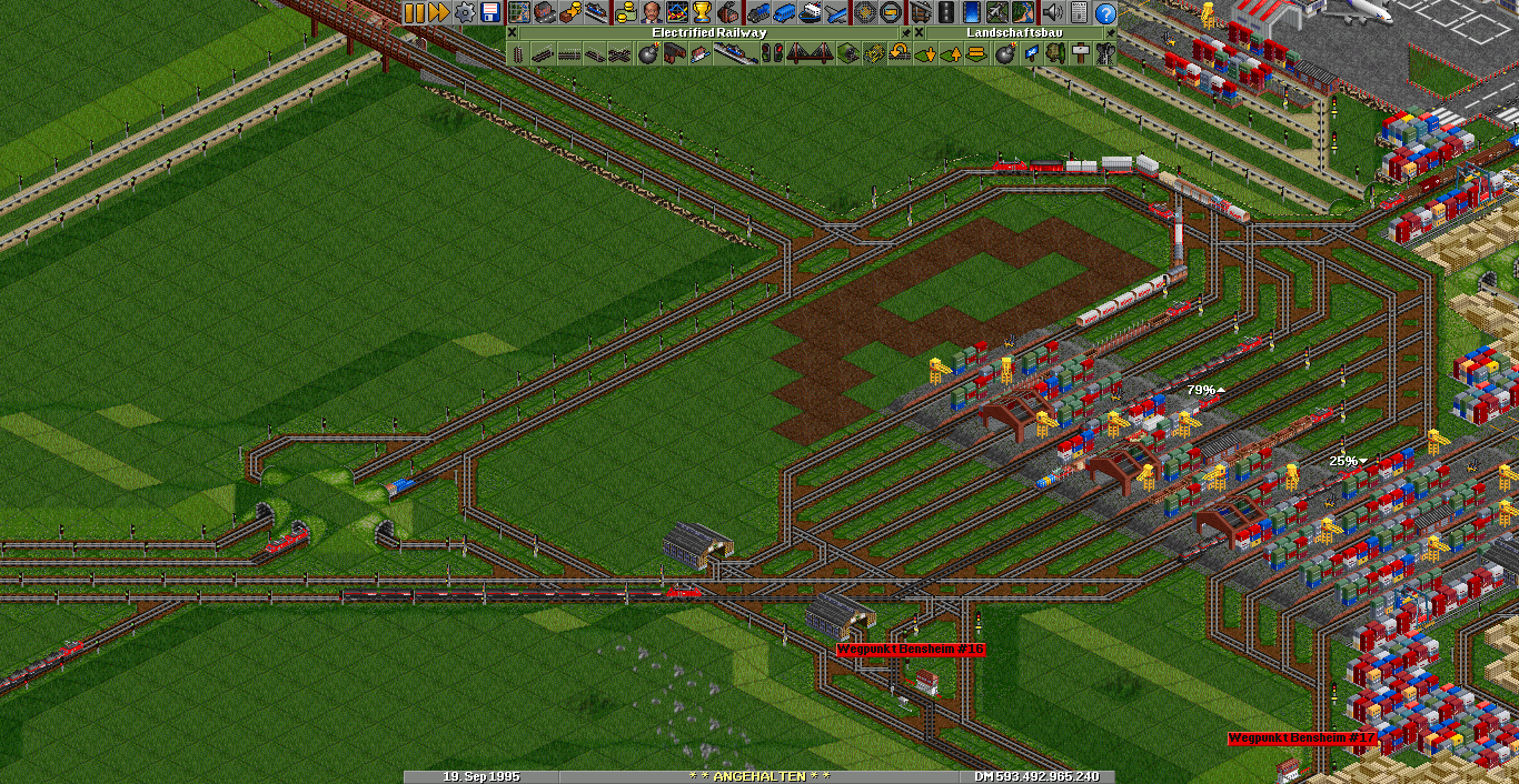Ich hab das gute Stück direkt in mein aktuelles Savegame (siehe oben) gebaut ... günstig gelegen an Fabrik und Raffinerie, werd ich hier also waren produzieren und mal schaun, wie das ganze mit ein paar Zügen klarkommt