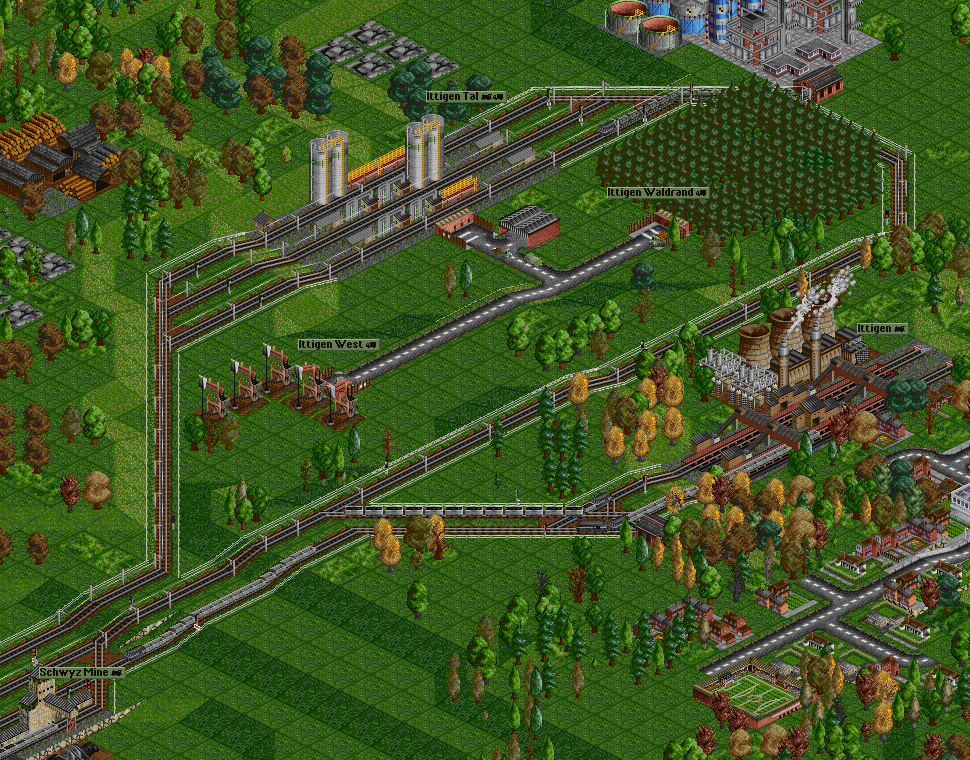 Danach folgen weitere Bahnhöfe für Einsenerz, Stahl etc., wobei wird die Züge jeweils auf unserem bereits bestehenden Schienennetz fahren lassen und nur die Start- und Endbahnhöfe ans Netz angliedern: