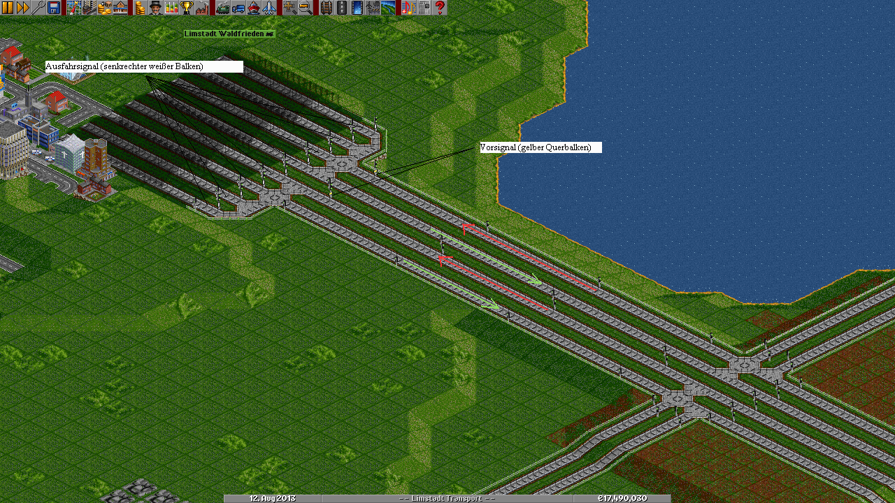 Das selbe kannst du dann stat diener umständlichen Variante mit den Wegpunkten/Wartebuchten auch für die anderen 4 bahnsteige machen (hast ja dann etwas mehr platz, ohne der stadt ihre Häuschen abzureißen) (siehe Attachment)