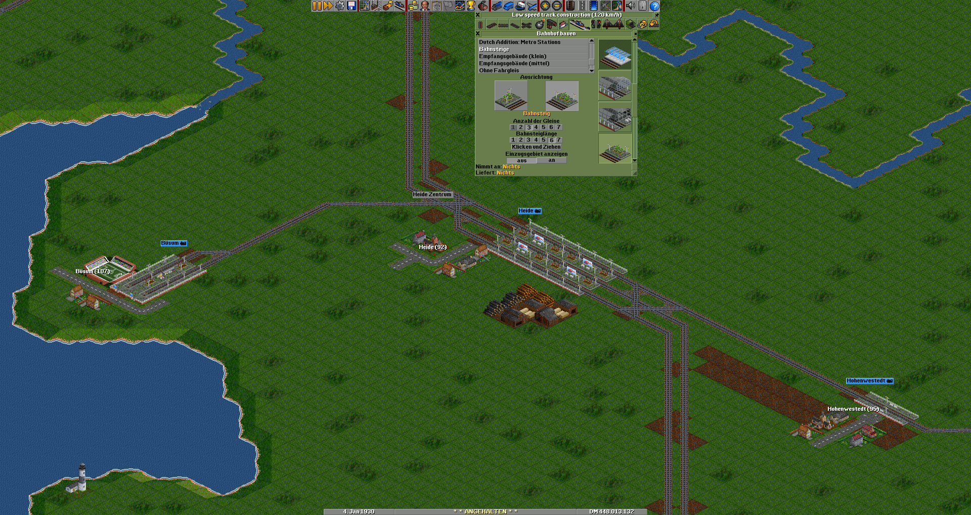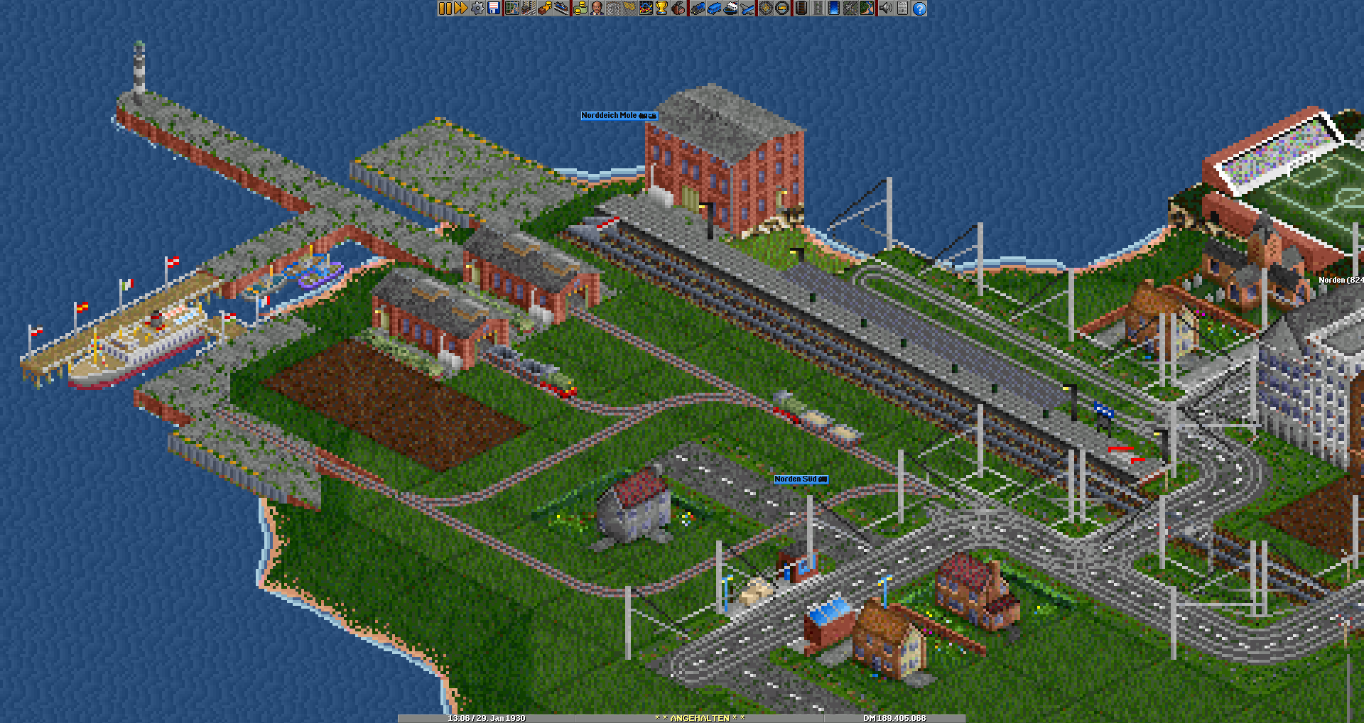 Sehr schön, allerdings fuhren auf der alten Mole die Züge noch offensichtlicher. Aber das lässt sich in TTD leider nicht darstellen, oder möglicherweise als speziell gezeichnete "Brücke"?