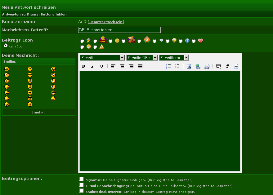 Ich spreche von solchen Buttons, wie Zitat, Code, Schriftfarbe,-Fett usw. .