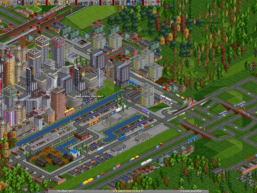 Das "Problem", dass die Stadt Autobahnen, Freiflächen oder anderes verschlingt, muss ja nicht mehr sein. Die letzten Szenarios habe ich mit der Einstellung "KI darf keine neuen Straßen bauen" (sinngemäß) gespielt Für meine Spielweise mit weitgehend im Editor vorgeplanten, halbwegs glaubwürdigen Straßenverläufen ist dies die beste Erfindung seit Erfindung der Spülmaschine freches Grinsen .