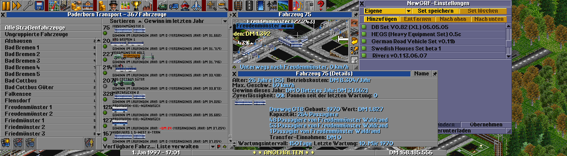 Du meinst also, dass die NA-Streets, die Streetcars aus dem NA-CitySet, die Brücken (sollte TBRS mit NA-Streets sein), die NewStations und die nicht originalen Gebäude allesamt keine New-GRFs sind?
