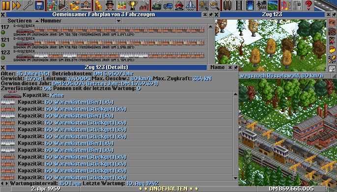 Mir fällt auf, dass es für die Waggons scheinbar nur ne begrenzte Anzahl Beladungsgrafiken gibt. Beispielsweise "Ziegel" sehen am Bahnhof aus wie "Ziegel", im Zug aber wie "Holz". Oder "Holzprodukte" (und a.) sehen im offenen Waggon aus wie "Kohle". Kalkstein sieht auch aus wie Holz, usw. Gibts auch andere, passendere, neuere Frachtgrafiken? Hab bisher nichts gefunden.
