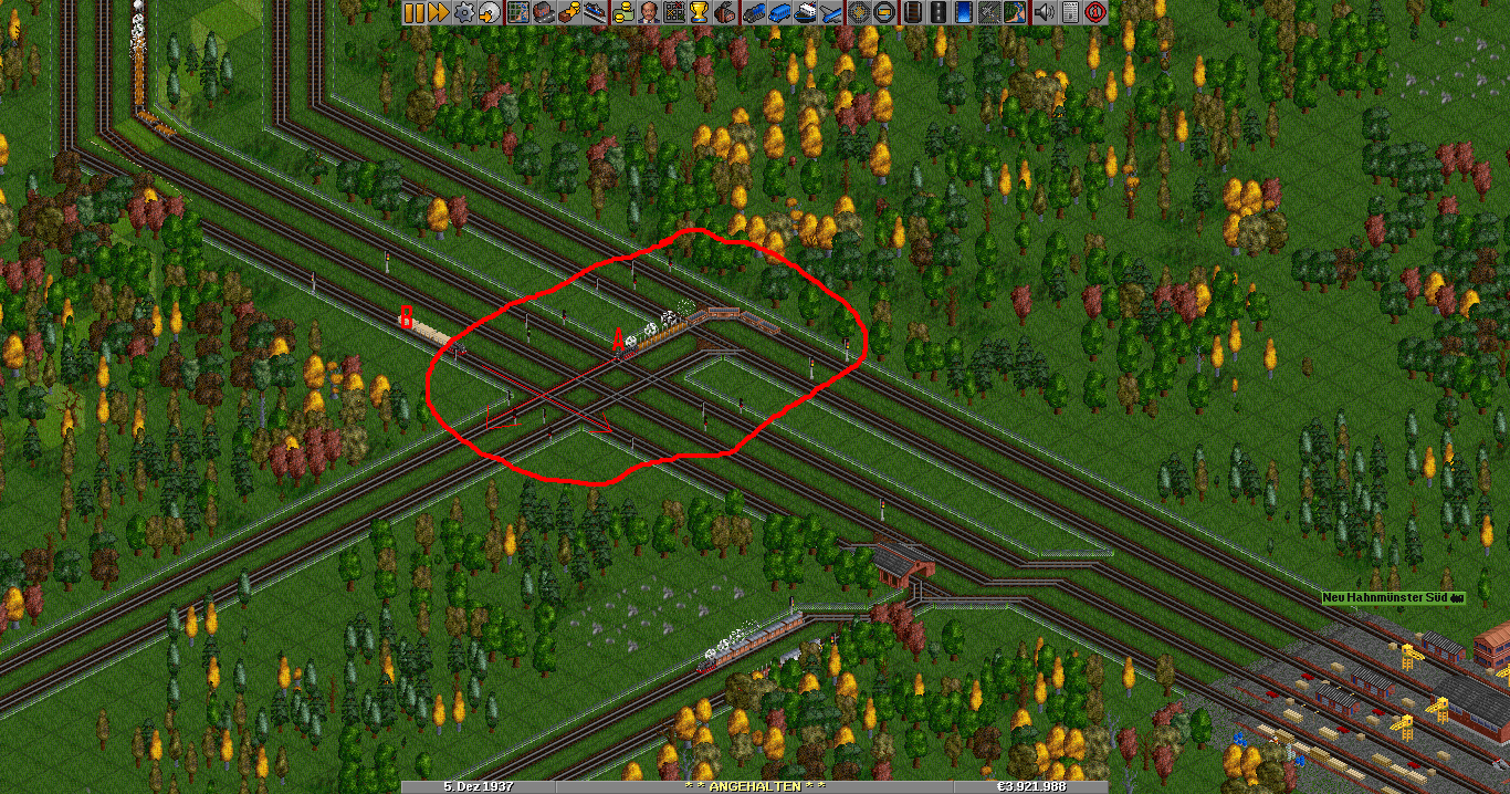 Eddi schrieb:Zeigt aber auch gleich, wieso dieses Konzept von programmierbaren Signalen so nicht in OpenTTD übernommen werden kann, weil bei Benutzung von Pfadsignalen vor dem Bahnsteig gar keine Signale (oder nur die Rückseite) stehen.