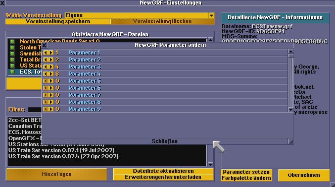 Starte mal ein neues Spiel. Soweit ich weiss kann man in OTTD newgrfs nicht so einfach hinzufügen oder entfernen. Parameteränderungen fallen auch unter diese Restriktion.