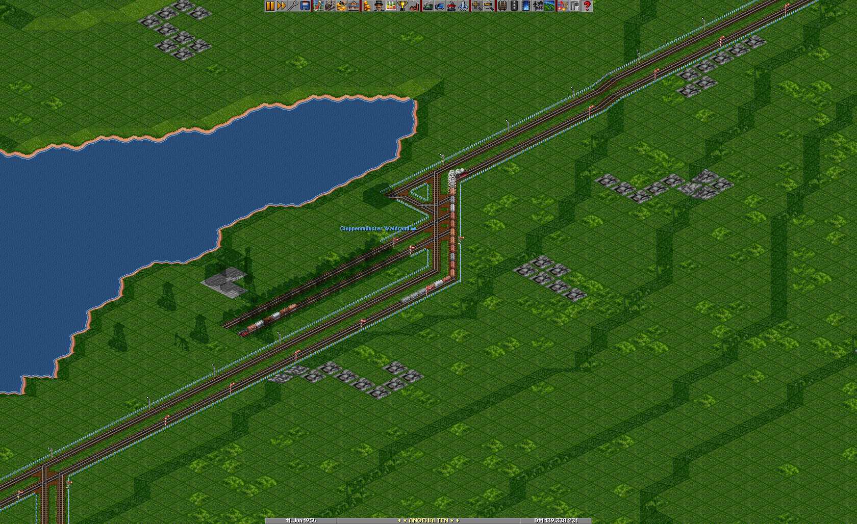 Fragt bitte nicht warum ich so viel Geld habe und ich 1950 schon tolle Züge habe, weil ich gecheatet habe und nach langer Pause von OTTD mal wieder angefangen habe und noch wieder in der Testphase bin :/