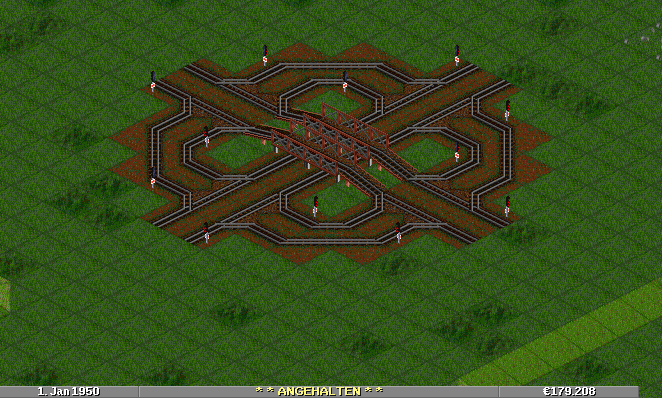 Dogbronco, nette Beispiele. Aber wenn Du alle Komentare in diesem Tread mitgelesen hättest, würdest Du wissen, daß deine Kreuzungen zu eng sind! Allein mit Zügen über 8-10 Felder, dann der Geschwindigkeitsverlust in den 45° Kurven....ist bei schnellen Personenzügen nicht tragbar. Für jede weitere Fahrrichtung innerhalb einer Zuglänge geht die Geschwindigkeit bis auf 77Km/h zurück.