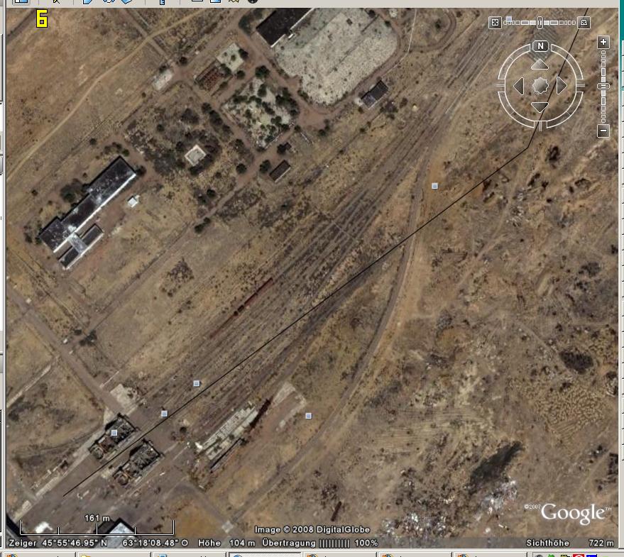 Im Anhang Ein Satellitenfoto von Google Earth. Unten Links sind zwei solche Transportfahrzeuge zu sehen, oben rechts eine Verzweigung. Interessant ist auch, dass die Schienen scheinbar nicht ausschliesslich von diesen Transportern befahren werden sondern auch von normalen Güterzügen.