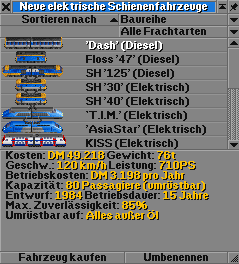 (18.08.2011 17:35)Fränklie schrieb:  Macht es doch so wie in mb´s DBset. Wenn es zu wenige Hänger sind steht da "MORE" und ansonsten halt "LESS" oder so. Damit hat der Spieler die Freiheit den den Wagen aus zu rüsten wie er will, aber er kann nicht jeden "Murks" damit machen.
