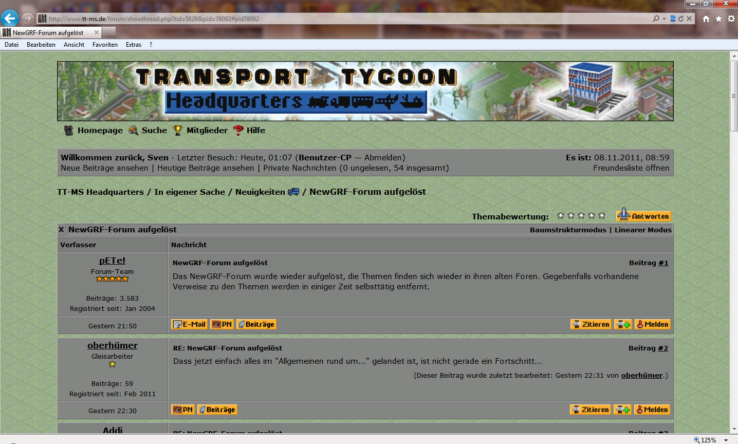 Naja, wer weiß, woran das hier wieder liegt. So muss ich mir halt weiter damit behelfen, auf der Seite runter zu scrollen, bis das Datum des Postings etwas Relevantes anzeigt...