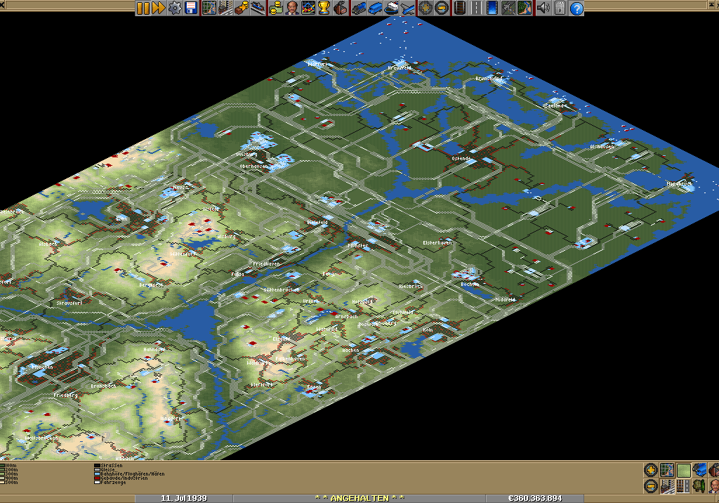 Heute ist die Karte weitgehend fertig gestellt, allerdings fehlt noch so einiges an Straßenbahn und einige „Überlandbusse“ sollen auch noch fahren. Zudem werde ich hauptsächlich an der Küste wohl noch einiges ändern müssen. So stehen z.B. an den ersten Bahnhöfen noch 1-Feld Depots, die finde ich heute ziemlich unpassend. Und immer, wenn ich mir einzelne Abschnitte anschaue, fallen verbesserungswürdige Stellen auf.