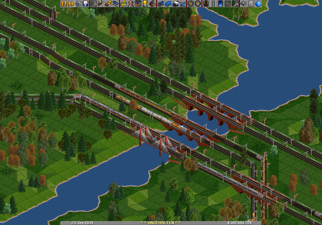 Anbei ein Spielstand, Version OTTD 1.0.5 ( Bei höheren Versionen muss das Steigungsverhalten und die Lastverteilung neu eingestellt werden, eventuell muss man das Beschleunigungsmoddell auf Real stellen)