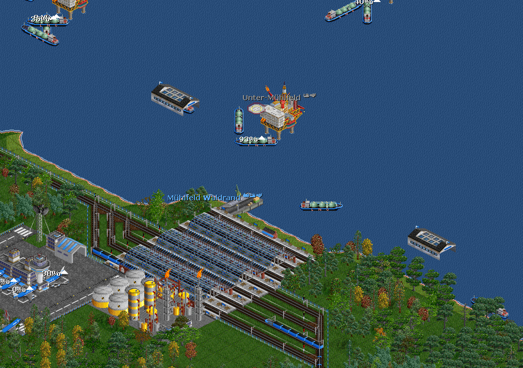 Die Ölbohrinsel Unter-Mühlfeld (vot Kurzem neu erschienen) wird vom Einzugsbereich des Bahnhofs erfasst und stellt im Bahnhof Öl zur Verfügung. Das ist insofern blöd, denn meine Tanker laden nicht nur Öl aus, sondern nehmen auch immer wieder etwas mit. Das geht solange, bis die Tanker voll sind.