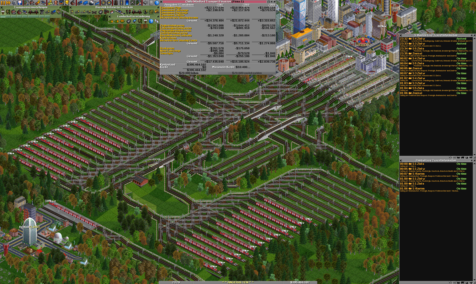 Ich habe bei einem Spielstand mit Chillis 12_15 mich in die Verzahnung von verschiedenen Linien und zu unterschiedlichen Tageszeiten eingearbeitet. Was darausfolgt sind folgende Bilder meines Zentralen BWs um die nicht benötigten Züge zu parken.