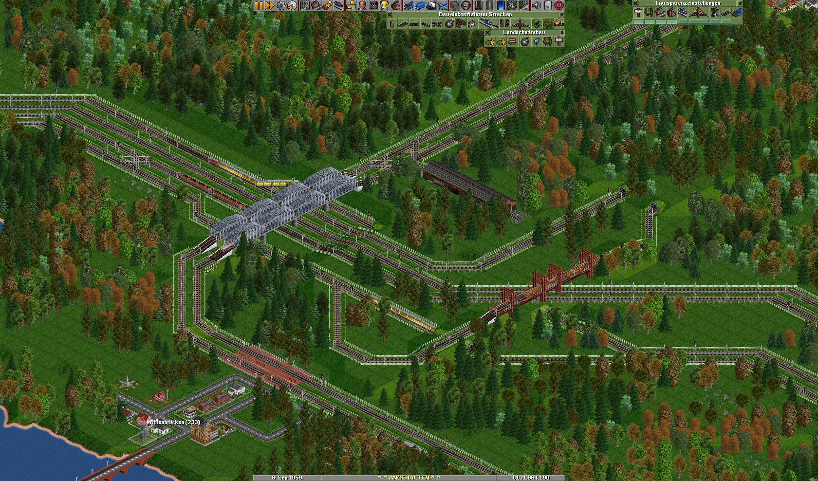 Der Knotenpunkt der Güterzüge. Mittig die Kohlemine im Norden und Süden jeweils noch ein kleiner Wald wo man Holz für neue Häuser holt. Von Nord nach Süden die Bauernhof Verbindung zu der großen Fabrik im Westen.