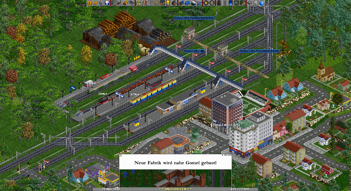 Ich hab das gute Stück direkt in mein aktuelles Savegame (siehe oben) gebaut ... günstig gelegen an Fabrik und Raffinerie, werd ich hier also waren produzieren und mal schaun, wie das ganze mit ein paar Zügen klarkommt