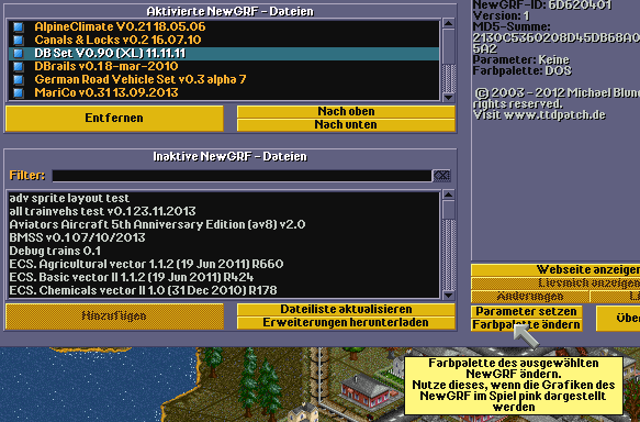 Das heißt ja aber alles nicht, dass OpenTTD aufhören wird, diese Palette zu unterstützen. Nur ist es relativ sinnbefreit, sie heutzutage noch für irgendwelche (New)GRF-Projekte zu verwenden; und das wird mit den passenden Bezeichnungen klar(er) kommuniziert.