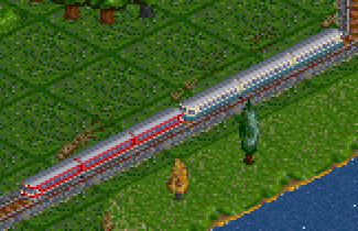 Ein weiteres Problem von TTD ist das Verhalten auf "foundations" wo es traditionell zu clipping-Fehlern kommt. Dies kann man für gerade Strecken minimieren durch Aufspalten der Fz-sprites, aber dies bedingt nicht nur zusätzlichen code für die Überprüfung der Fz-Auslenkungen, sondern vor allem eine Vervielfachung der Grafik-Sprites. Daruaf habe ich auch erst einmal verzichtet.