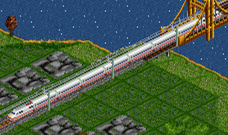• Tunnel: die "über" dem Tunnel liegenden Groundsprites haben keine Bounding-Box, weshalb darunterliegende Fahrzeuge unsichtbar sein müssen, anstatt einfach nur durch den Spritesorter überdeckt zu werden. Wenn also einfach nur die Bounding-Box vergrößert wird, muß ein Fahrzeug, das in den Tunnel einfährt, durch irgendeine Art von Maske abgeschnitten werden, was ein "Sprite Post-Processing" wäre, welches einfach in der Architektur nicht vorgesehen ist. (Einer der Gründe, warum es für Schiffe keine Tunnel gibt) Deswegen bilde ich diese "Slices" in meinem GRF.