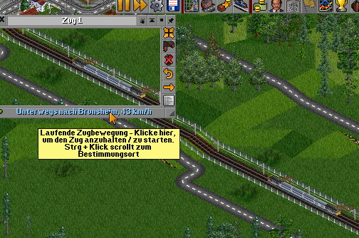 Klick ich auf den Zug mit linker Maustaste und dann auf den unteren Teil des Popups, so hält der Zug ebenfalls an, und ich habe sofort das Fenster des Zuges offen um weitere Befehle zu erteilen.