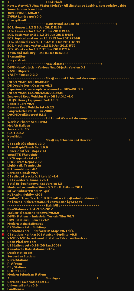 Die Liste an verwendeten GRFs ist lang, darum lasse ich da lieber den Screenshot im Anhang sprechen. Auch sei vorausgeschickt, dass es hier nicht um einen "Schönbau" ging, sondern eher um eine Art "Machbarkeitsstudie". Dementsprechend habe ich auch gecheated und mich mit reichlich finanziellen Mitteln ausgestattet, um in Ruhe frei herumbauen und testen zu können.