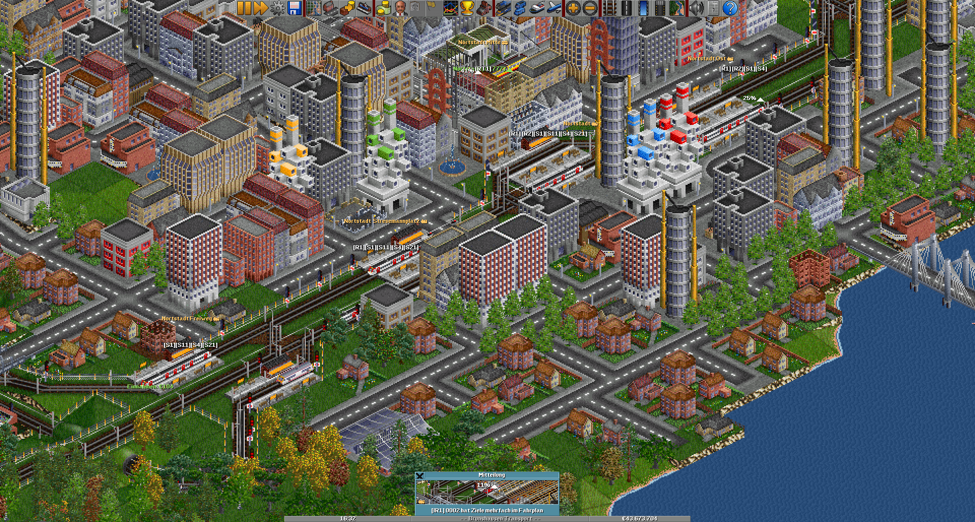Wie man unschwer erkennen kann, ist diese Stadt eng mit Cohaven (Main) verbunden. Hier halten außer den Railjets alle Linien. Am Regionalbahnhof Brunshausen Wegstedt zweigt dann auch die Linie R1 ab, um nun an der Küste entlang durch die Ortschaften zu bummeln...