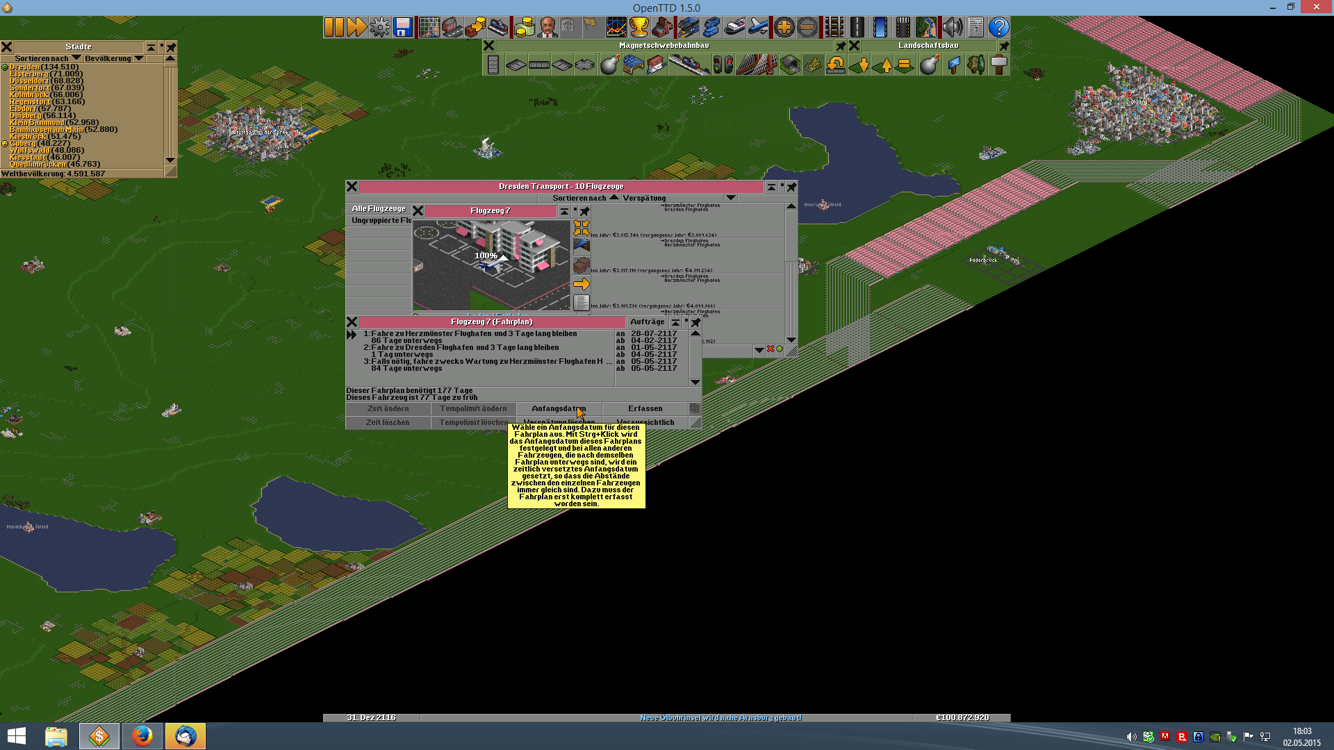All diese Städte werden mit 35 Passagierzügen a' 63 Felder lang und 30 Airbus A 380 abgegrast, doch ich schaffe es nicht, die Bewertung der Stationen hoch zu pushen, welche auf "sehr schlecht" steht.