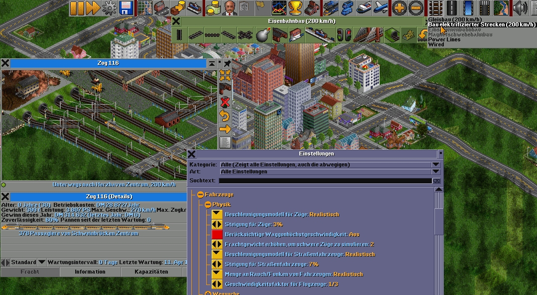 Bist du sicher? Es stimmt zwar das ein solcher Parameter für das SBB-Set existiert, aber dann sollte im Zugfenster für "Max. Geschw." 200 km/h angezeigt werden anstatt 270 km/h. Und zum anderen wird im Gleismenü für "Bau elektrifizierter Strecken" ebenfalls "200 km/h" angezeigt. Unabhängig vom Fz-Set.