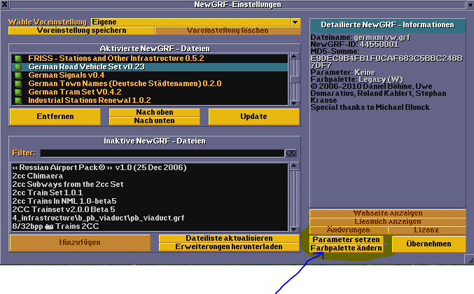 Außerdem kann man bei den NewGRF-Einstellungen zu jeder GRF die Farbpalette einstellen...