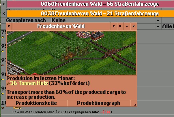 Auch wenn ich in meinen Spielen primär Passagiere und Post befördere, muss da immer noch etwas Fracht dabei sein. Gerade sitze ich an einem Spiel mit der GIS-Version 0.0.4 und GETS 0.6 als Eisenbahn-GRF, bei dem ich versuche, die Ketten für Lebensmittel und rund um Stahl zum laufen zu bringen und an selbigem zu halten. Mit den frühen Fracht-Loks, die mit 45 bis 65 km/h über die Karte zuckeln, ist das gerade bei weiträumigerer Verteilung der Industrien eine echte Herausforderung. Da ist man froh, wenn Mitte der 1920-er Jahre die ersten Einheitsloks kommen und mit ihnen als Fracht-Lok die BR 44 mit 80 km/h. freches Grinsen