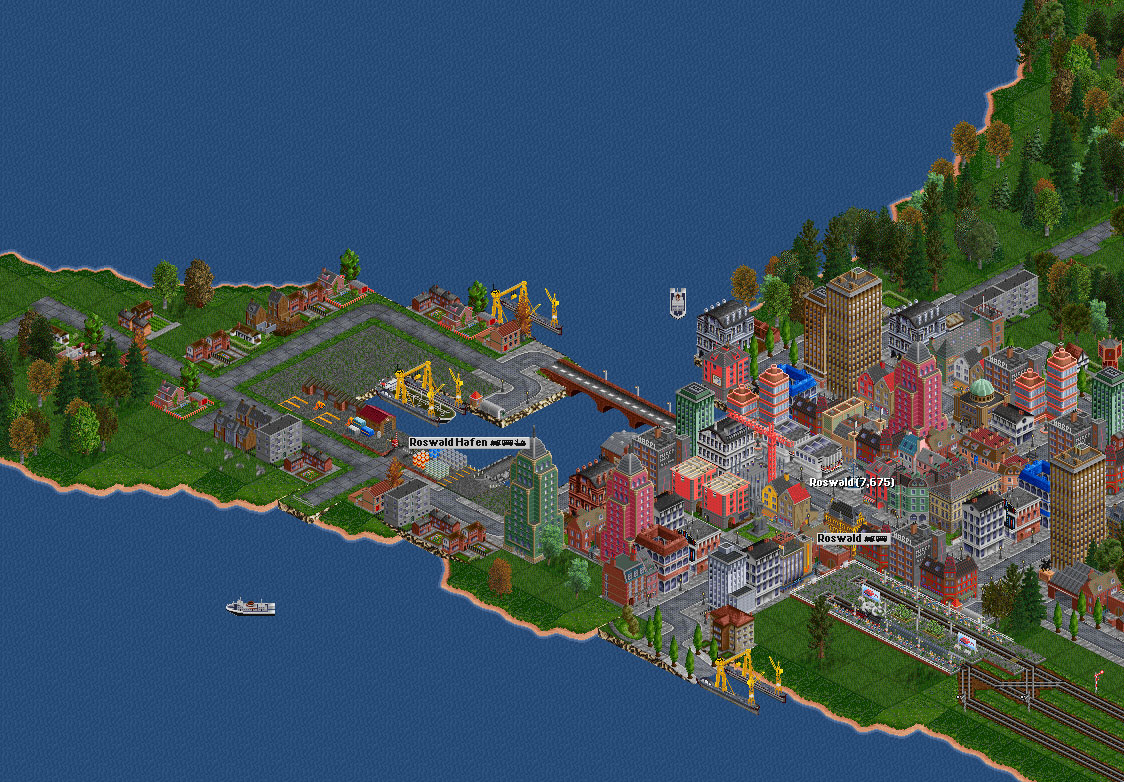 Roswald, gelegen an einer großen Bucht im Nordosten der Karte, ist ein eher verschlafenes Küstenstädtchen. Regionaler Gleisverkehr verbindet die Stadt mit dem benachbarten Fürstenmünster , welches als Drehtor in die restliche Welt und Dank seines Tiefseehafens geradezu explodiert ist.