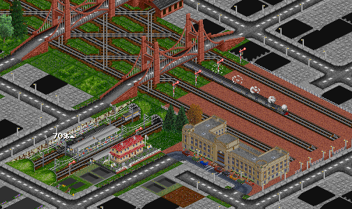 Bahnhof auf der Brücke geht auch nicht, da es die Brücke garnicht wirklich im Spiel gibt. Im Spiel gibt es nur die Brückenköpfe. Die Brücke dazwischen wird dann nur auf den Bildschirm gemalt. Und wenn ein Zug über die Brücke fährt, dann weiß das Spiel, wo der ungefähr sein muß und malt den da hin. Darum gibs auch kene Signale und so auf der Brücke.