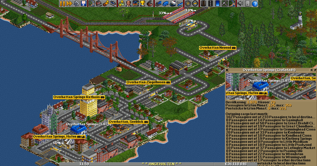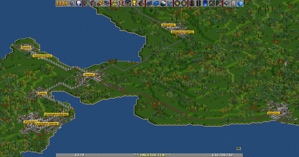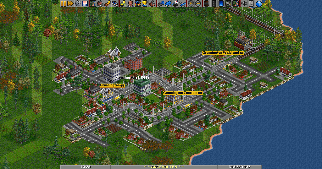 Angefangen wurden in Grunnington das am Anfang eines der größten Städte im Spiel war. Da in der Nähe auch weitere Städte liegen habe ich eine Überlandstraßenbahn in die Nachbarstädte gebaut.