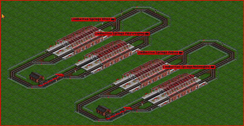 Der mittlere Bahnhof in meinem oberen Bild hat Ein- und Ausfahrtsignale und trotzdem fährt der zweite Zug auf Gleis 1 ein, anstatt auf Gleis 2.