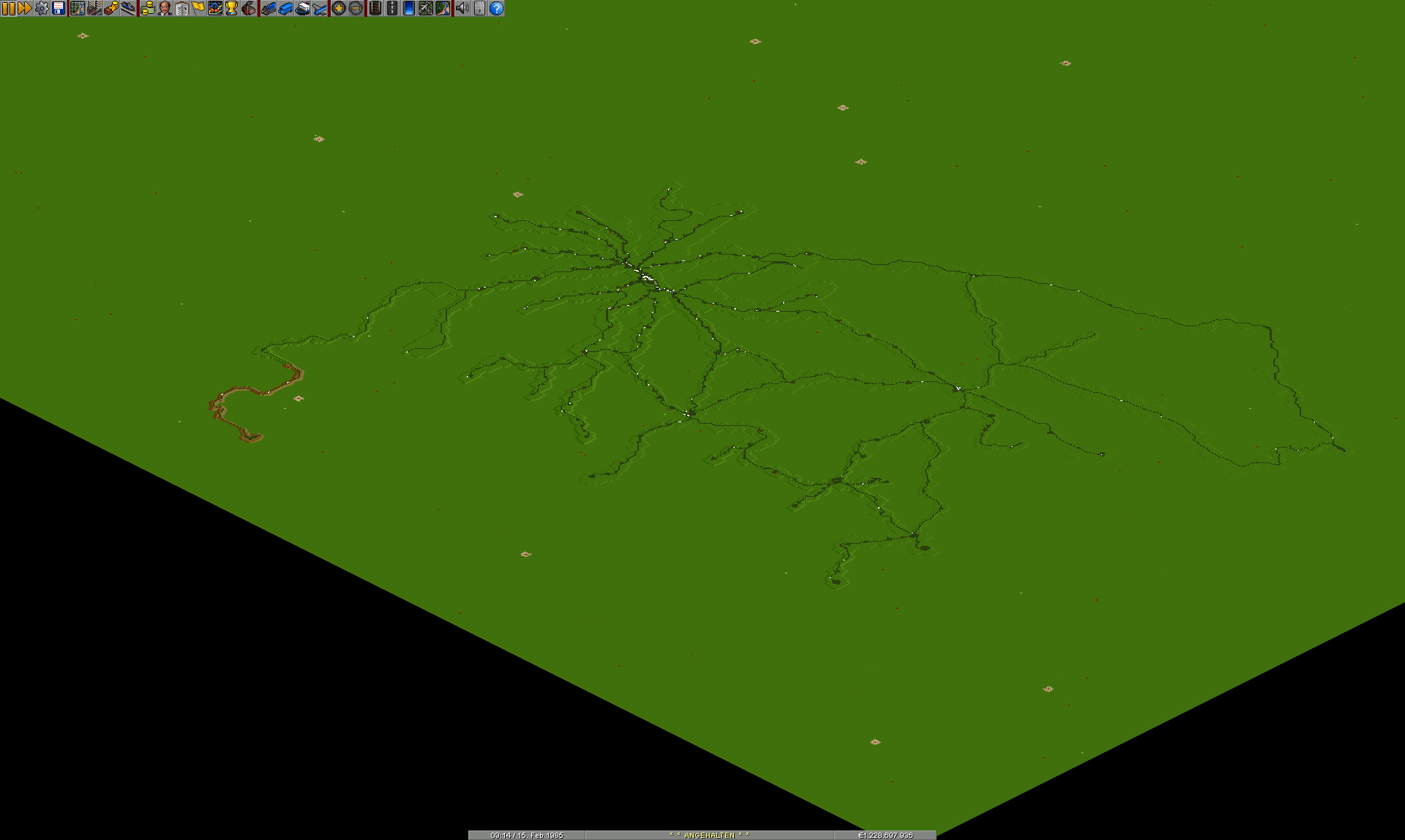 Mein Start : ein leeres 2Kx2K Feld in der Mitte ein kleines München. Symbolische Streckenaufbau, so wie die Umsetztung des Fahrplans. Wobei ich den für den 1. Schritt nur auf 1h reduziert habe.
