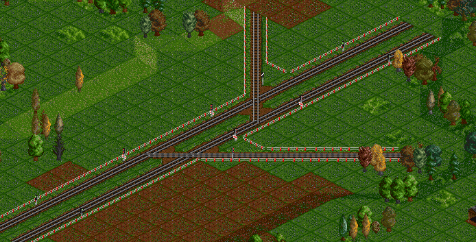 Vor dem Bahnhof ist ein Blocksignal das den anfahrenden Zug stoppt wenn einer gerade beladen wird. Gleich danach kommen Blocksignale wo die abfahrenden Züge warten können wenn der Weg blockiert sein sollte. am Ende wieder ein Pfadsignal.